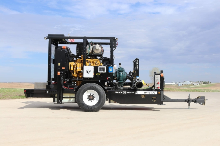 Warthogs and pump trailers share many features. Both are equipped with a full hydraulic bypass with a built-in pig shooter to make hookup, shutdown, and pigging the line fast and easy. All Puck manure booster pumps are direct-driven from engine to pump. This allows us to grab full torque while minimizing the footprint and eliminating drivelines.