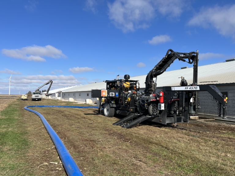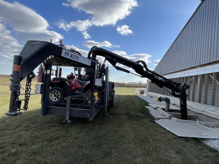 The remote-controlled hydraulic boom can service pits 13’-18’ deep with our Force Feed 4570. Extend your reach with the FF 5770 T, which offers more horsepower and the ability to go up and over a slurrystore, and maintains all the highly regarded automatic functions on our equipment.