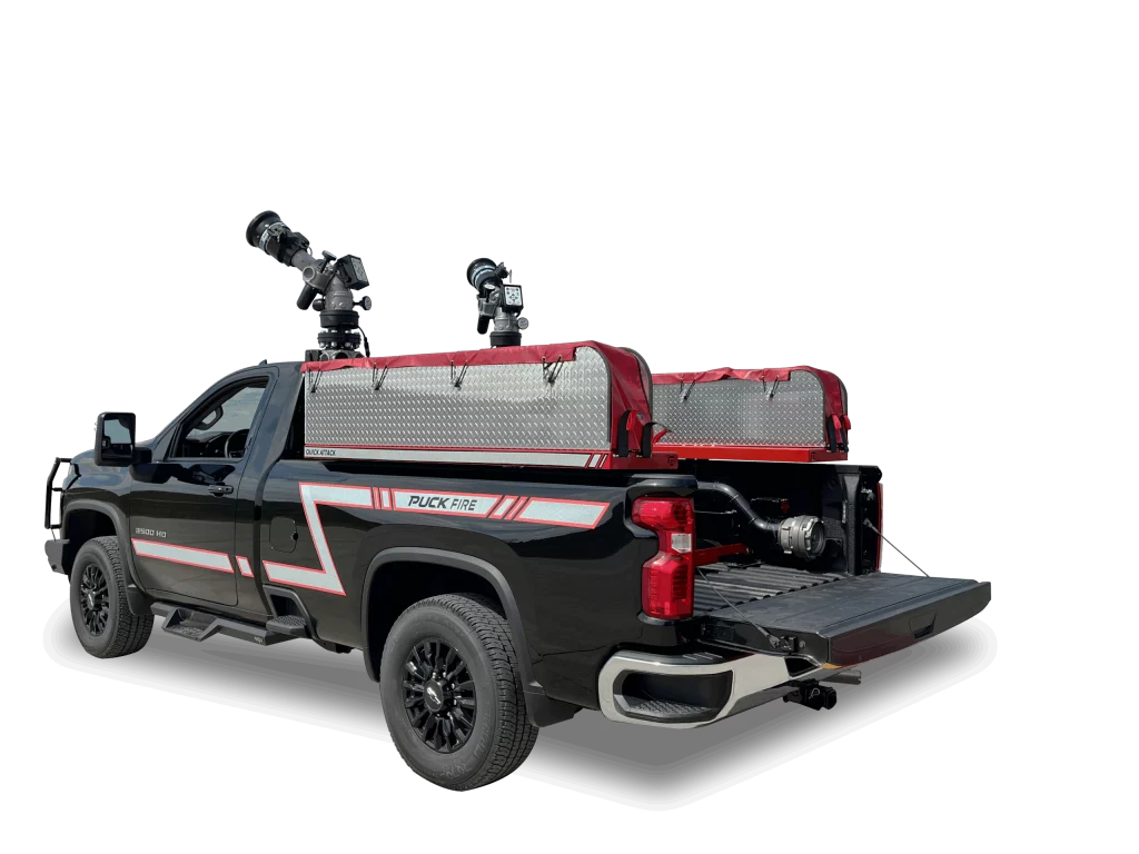 Be the first on the scene to get water on the fire fast. Quickly set up fire suppression with a mobile attack platform using a Puck Quick Attack. The 6” pipework and dual 6” Storz inlet connections. the truck allow for flow rates up to 4,000 GPM. Each nozzle is compatible with TFT Monsoon and TFT Master Stream nozzles with the optional remote control. Two hose trays are attached to the bed of the truck for storage. Automatic drain valves come standard, and full LED lighting packages are available. The Quick Attack is great on fuel consumption and maintenance, and is easy to maneuver into hard-to-reach areas.